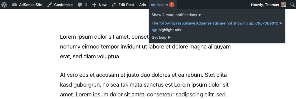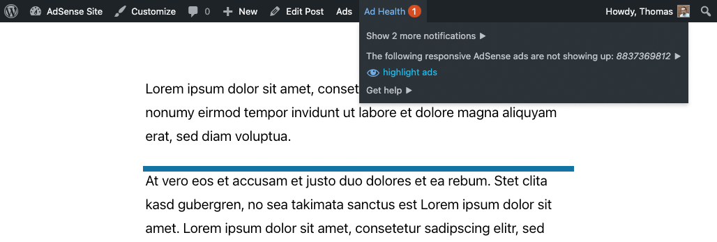 Because I’m using the same snippet () in both places, they will always show the same ad. To add a little variety we can create a new ad unit from the Google Adsense console and create a new snippet for it. We can then use a different snippet for each position: