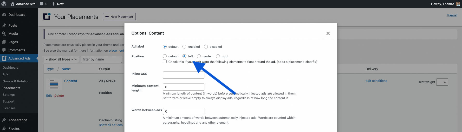 Since each of my pages contains a maximum of 10 posts, I’m going to show an ad after the second post and another one after the sixth: