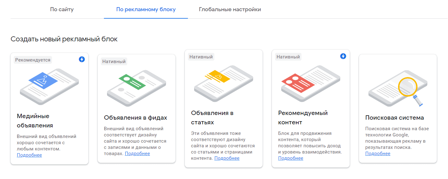 Процесс работы с обычными объявлениями начинаются с их создания. Для этого его нужно перейти на вкладку «По рекламному блоку».