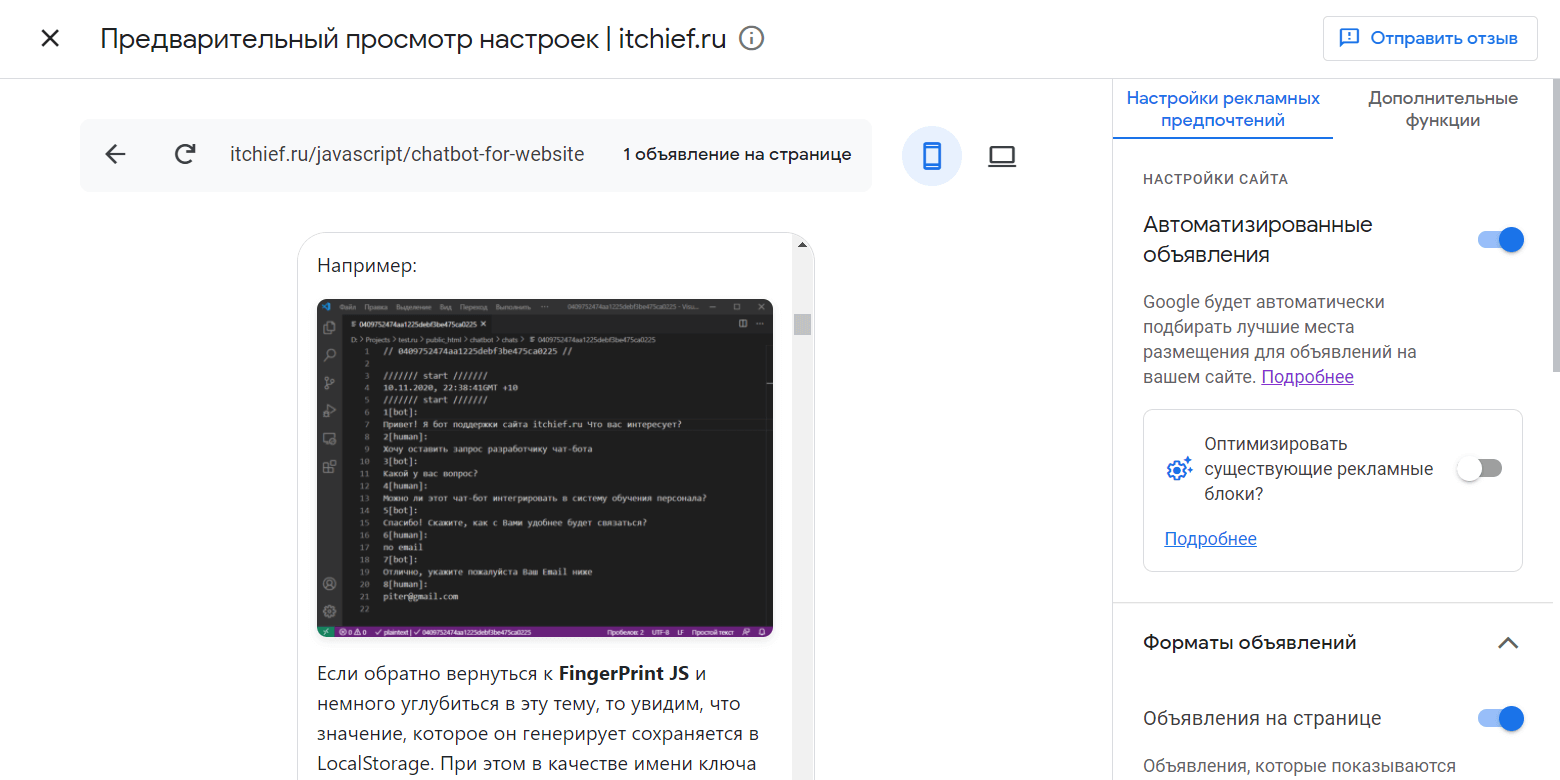 Примечание. Добавив рекламный код, проверьте, корректно ли отображаются объявления на разных устройствах и экранах.