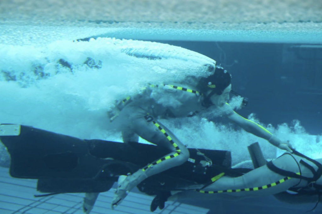 Любая съемка под водой невероятно сложна, цвета быстро теряются под воздействием воды. Синий свет лучше всего проходит под водой, но, как правило, подводному кинематографу приходится иметь дело с красным светом, который падает на один стоп света на каждые два метра от объектива. Съемка захвата движения под водой еще сложнее.