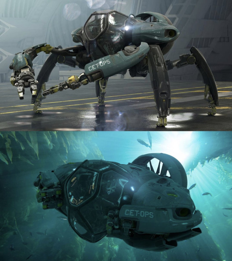 Костюм краба… многофункциональный подводный аппарат, управляемый человеком. Одно из многих новых транспортных средств RDA, которые можно будет увидеть в продолжениях «Аватара».