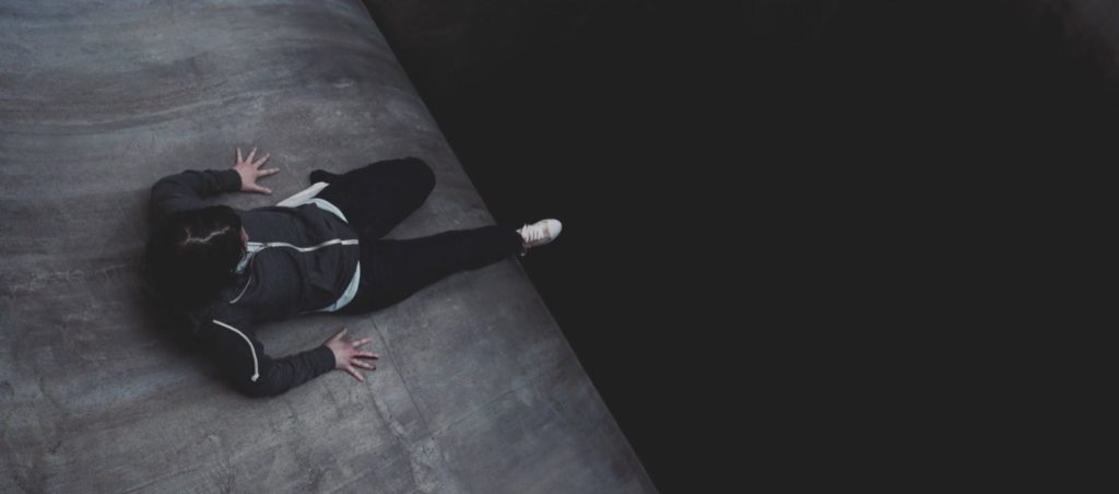 Место довольно неудобное, и при любом неосторожном движении героиня может соскользнуть вниз, где зритель видит только пугающую черноту