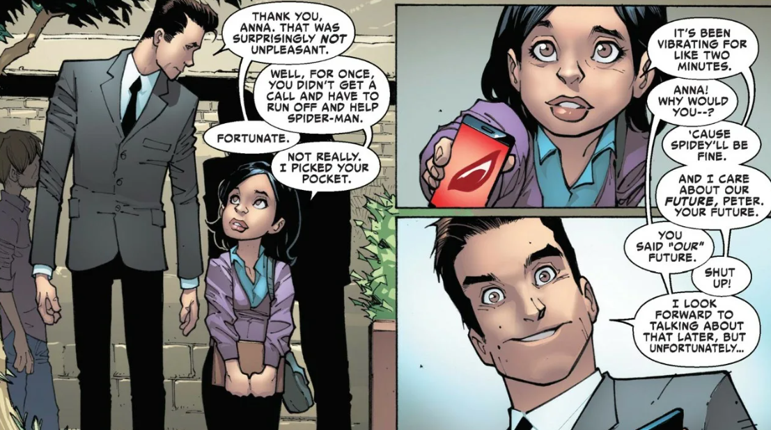 Вы же понимаете, что в Marvel множество временных линий и вселенных? Так вот, в то время как одна версия Человека-паука начала отношения с Эм Джей, в другой вселенной они быстро расстались, а Питер погрузился в заботы супергероя, чтобы забыть о проблемах.