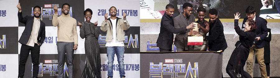 Майкл Б. Джордан, Чедвик Боузман, Люпита Нионго и Райан Куглер на мероприятии для Black Panther (2018)