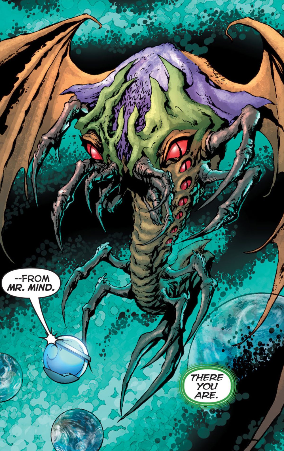 Mister Mind in the final issue of 52.Geoff Johns, Grant Morrison, Greg Rucka, Mark Waid, Keith Giffen, Mike McKone, Justiniano, Eddy Barrows, Chris Batista, Pat Olliffe, Darick Robertson/DC Comics