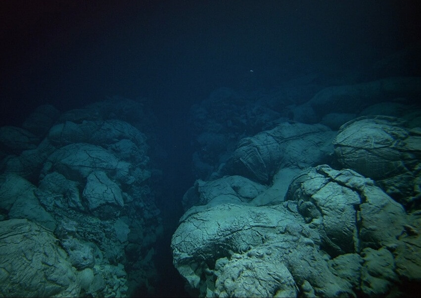 Дно Марианской впадины покрыто неприглядным вязким илом. Так как бездна имеет форму, напоминающую букву V, все, что находится в ней, постепенно стекает в самый низ. Останки живых существ постепенно преобразуются в почти шелковистый ил.