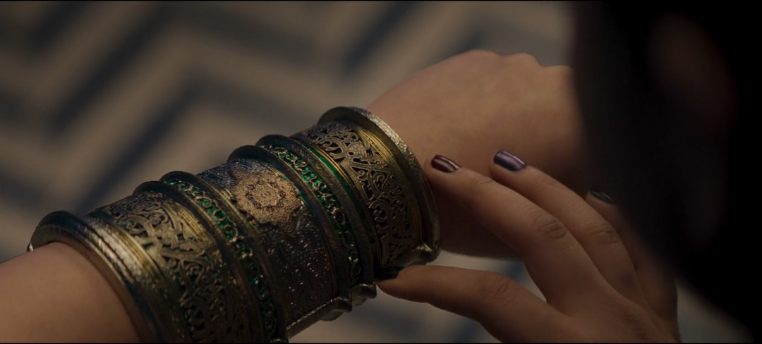 К этому же костюму она решает добавить «самовыражение» — браслет в национальном стиле, который прислала бабушка из Пакистана (он будет играть ключевую роль во всех событиях сериала).