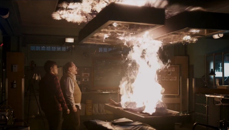 Ближе к финалу происходит еще несколько пугающих событий и в конце концов Томми соглашается, что в словах Остина есть смысл. Посовещавшись, они решают сжечь тело прямо в морге. Огонь от воспламенившегося трупа стремительно перекидывается на потолок и стены, и патологоанатомы быстро тушат пламя.