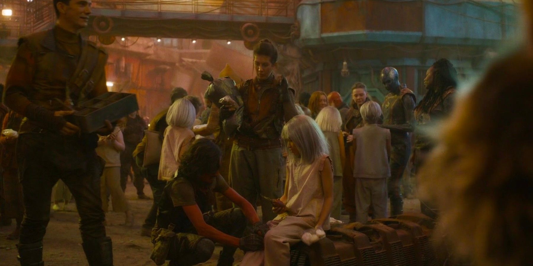 В результате Чернокнижник присоединяется к новым Стражам Галактики под руководством Ракеты. Фила-Велл была одной из детей, спасенных от Высшего Эволюционера, и основана на одноименном персонаже комиксов Marvel. Фила-Велл была частью Стражей в комиксах, а также была известна как Квазар и Капитан Марвел, что потенциально намекает на большое будущее персонажа в MCU.
