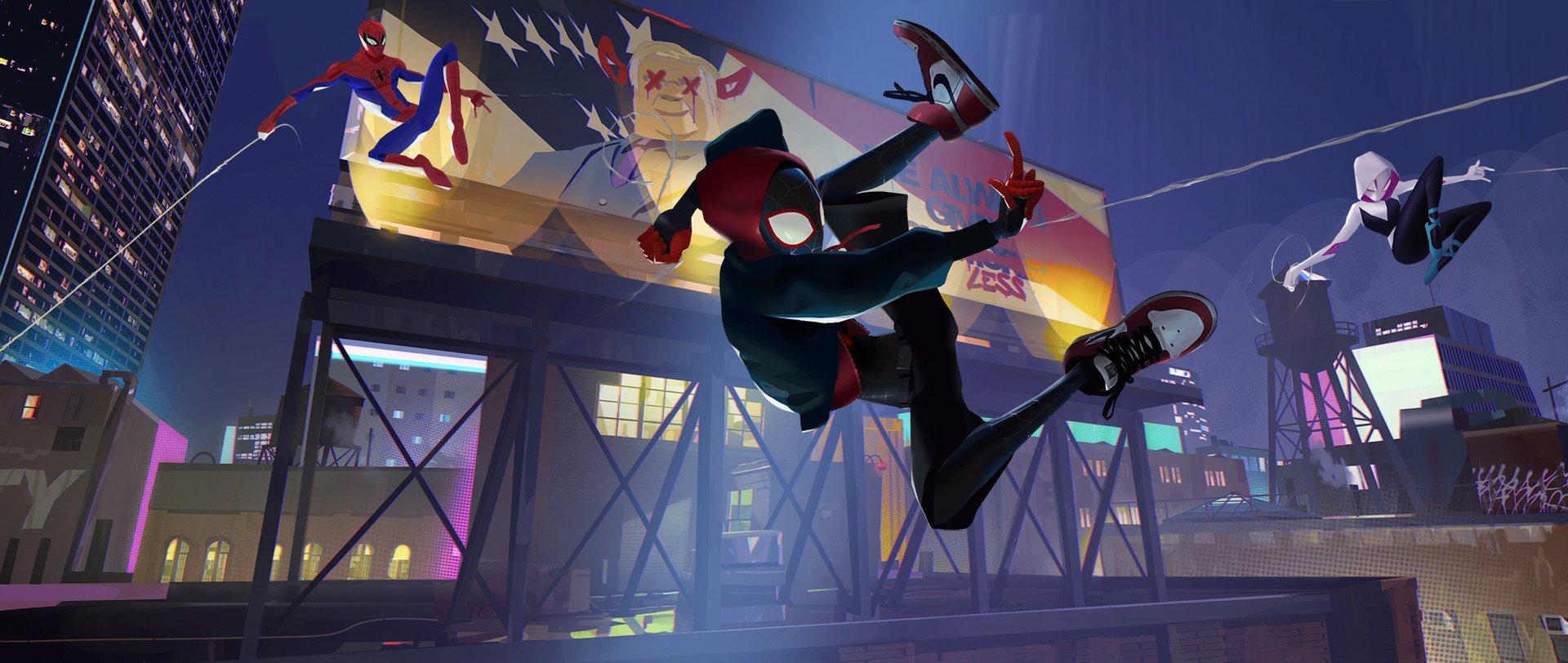 Постановщик Джастин Томпсон в интервью изданию Cartoon Brew рассказал о детали, которую я сначала не заметил, но которая становится очевидной, едва к ней присмотришься. В начале фильма Майлз — обычный подросток. Он слушает музыку, собирает рюкзак в школу и едет с отцом в машине — все эти сцены отличаются цветовой палитрой от последующего супергеройского разноса. В них более блеклые пастельные тона, в отличие от ярких цветов коллайдера и других вселенных. Сделано это для большего контраста между обыденной жизнью и непрекращающимися приключениями супергероев. Легче всего его заметить во время первой встречи Майлза с идеальным Пауком. Вот, что Томпсон говорит об этой сцене: