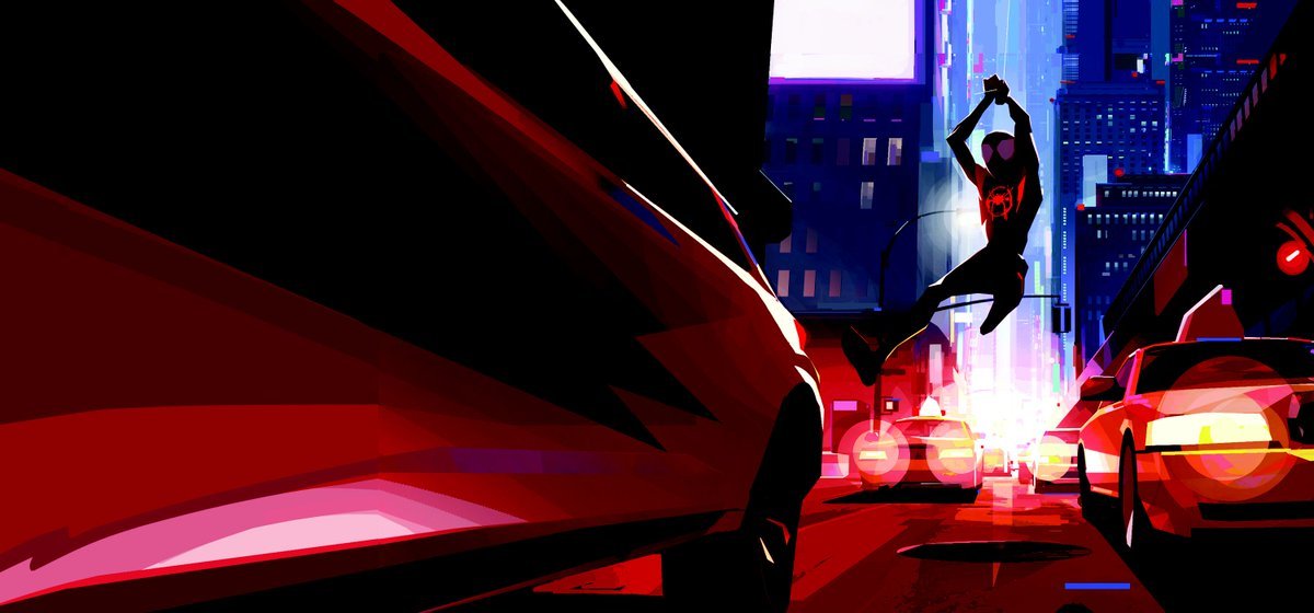 Постановщик Джастин Томпсон в интервью изданию Cartoon Brew рассказал о детали, которую я сначала не заметил, но которая становится очевидной, едва к ней присмотришься. В начале фильма Майлз — обычный подросток. Он слушает музыку, собирает рюкзак в школу и едет с отцом в машине — все эти сцены отличаются цветовой палитрой от последующего супергеройского разноса. В них более блеклые пастельные тона, в отличие от ярких цветов коллайдера и других вселенных. Сделано это для большего контраста между обыденной жизнью и непрекращающимися приключениями супергероев. Легче всего его заметить во время первой встречи Майлза с идеальным Пауком. Вот, что Томпсон говорит об этой сцене: