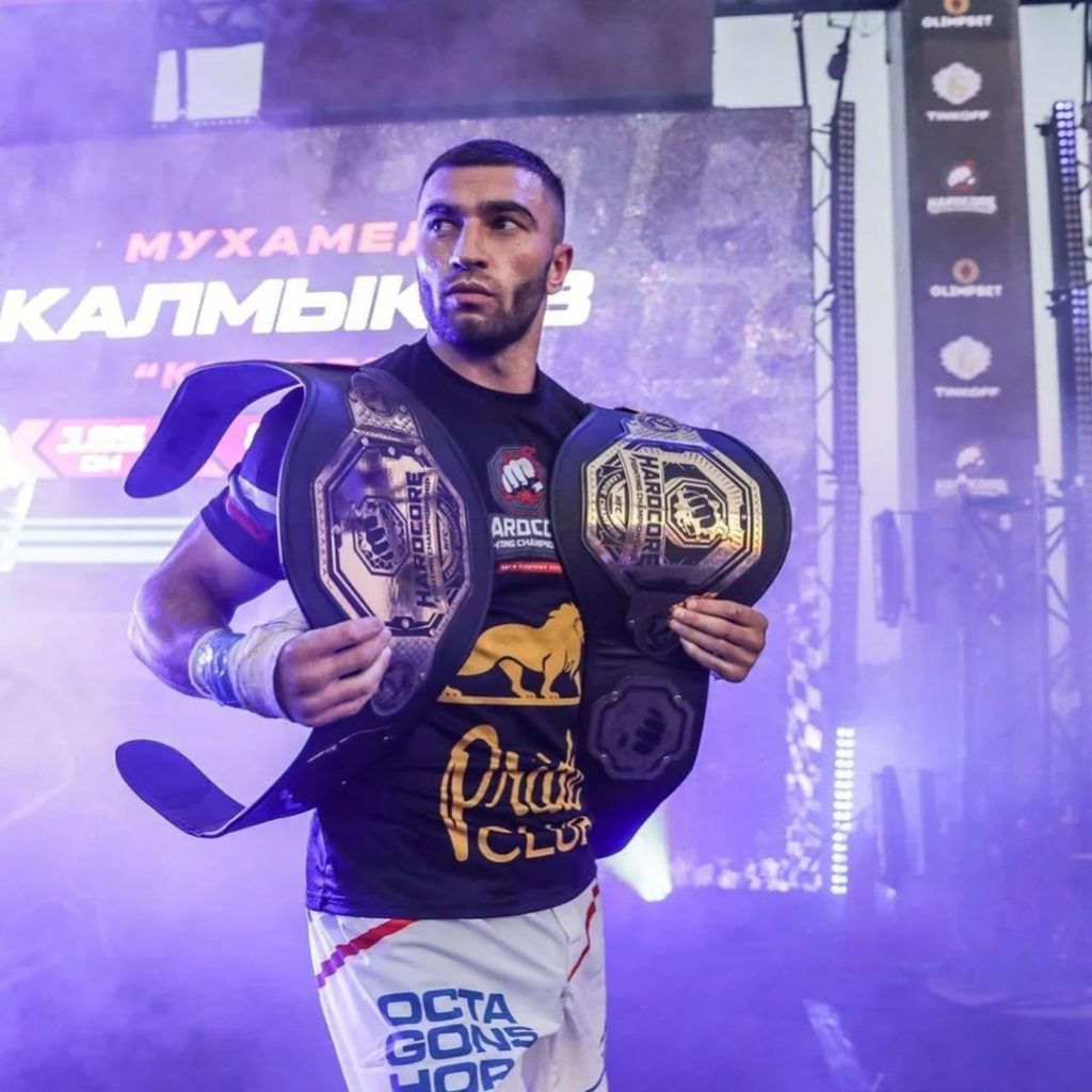 Калмыков является самым успешным бойцом первого сезона Hardcore FC. Он стал победителем гран-при, где на кону стоял приз — 1 миллион рублей. В финале гран-при “киборг” выиграл Эмиля Новрузова, а затем завоевал пояса в двух весовых категориях (до 77 кг и до 84 кг), одолев Кирилла Самброса и Михаила “Мачете” Тарабрина. После крайней победы над бразильцем Янси Сильвой, Калмыков объявил о том, что освобождает пояс в полусреднем дивизионе (до 77 кг) и сосредоточит свои силы на среднем весе (до 84 кг). Рекорд Мухамеда в кулачных боях составляет 10 побед и ни одного поражения, поэтому его смело можно назвать одним из лучших представителей “кулачки”.