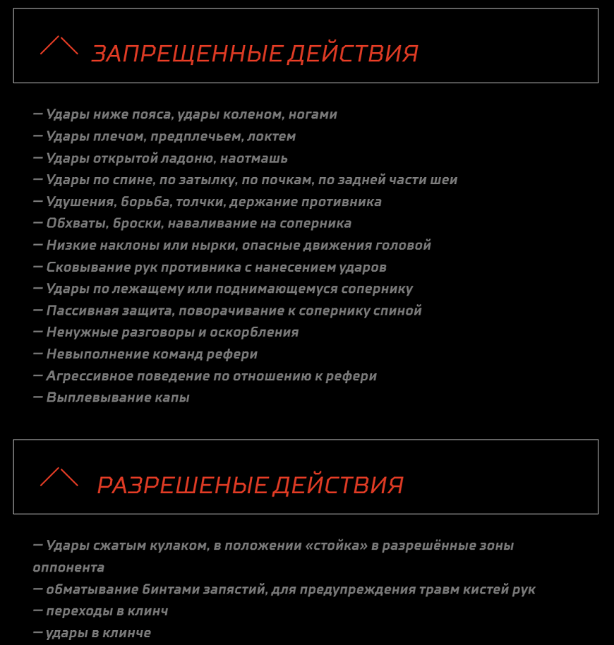 - Не допускаются удары иными частями тела, кроме как кулаками;