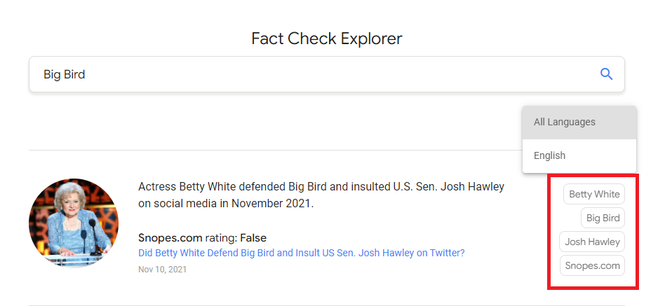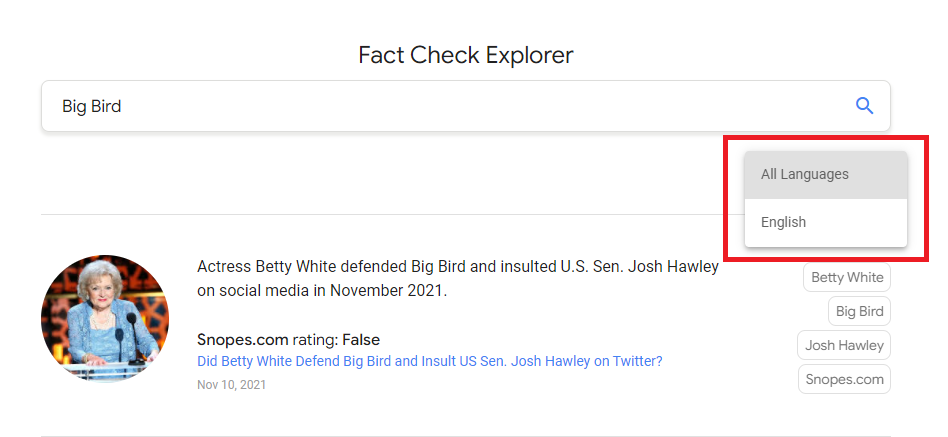 Проверить факты можно с помощью данных независимых организаций — все они собраны внутри инструмента Fact Check Explorer. Он поможет найти статьи, которые подтвердят или опровергнут тот или иной факт.