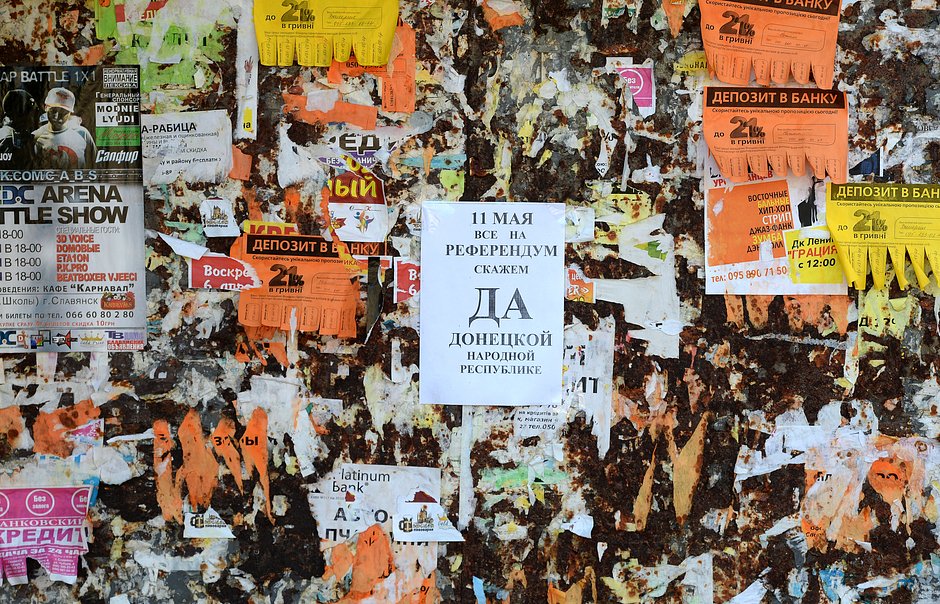 Однако 11 мая 2014 года, несмотря на давление со стороны властей Украины, Луганская и Донецкая области на референдуме проголосовали за самоопределение и стали называть себя Луганской и Донецкой народными республиками.