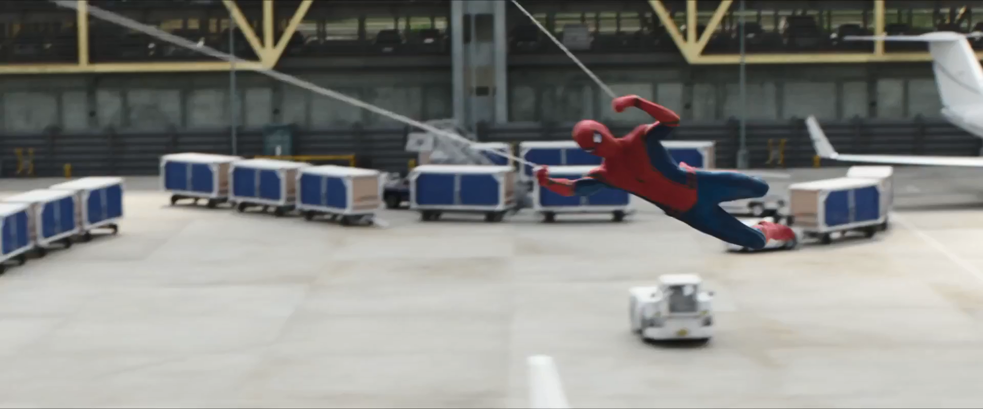 Тони Старк проигрывает на YouTube видео, на котором Человек-паук в последнюю секунду останавливает мчащуюся машину, оказавшись между ней и автобусом. Голыми руками Человек-паук останавливает машину, даже заставляя заднюю часть подпрыгивать вверх, и это немалый подвиг.
