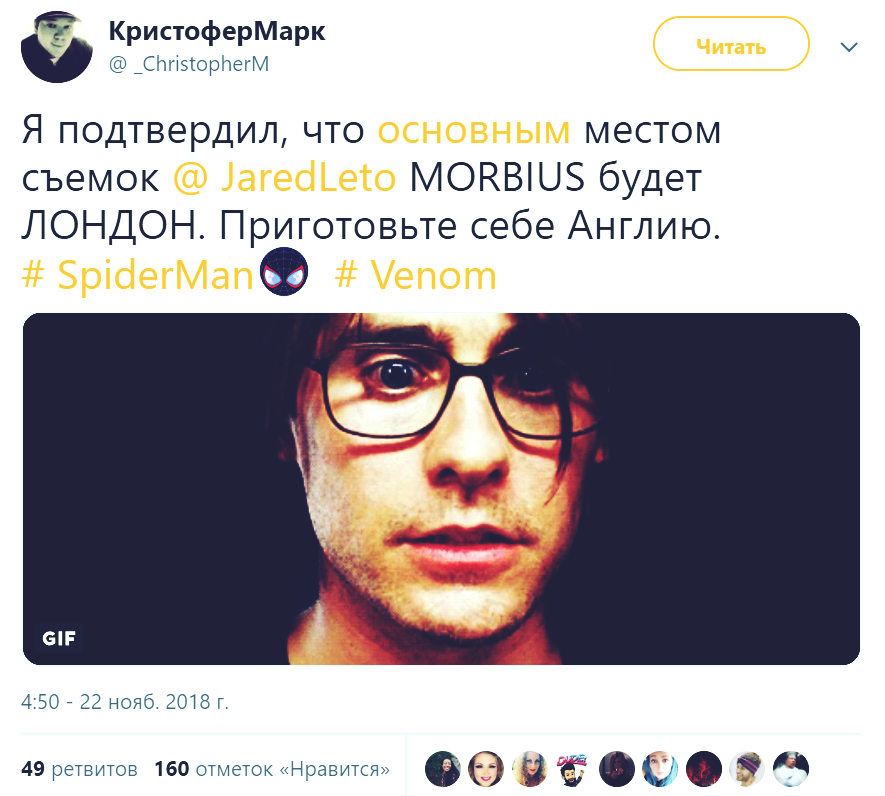 - «Морбиус» — это второй проект «Вселенной Marvel от Sony». Первым стал «Веном», а следом выйдут такие картины как «Веном 2», «Ночной страж», «Крэйвен-охотник», «Черная кошка» и пр.
