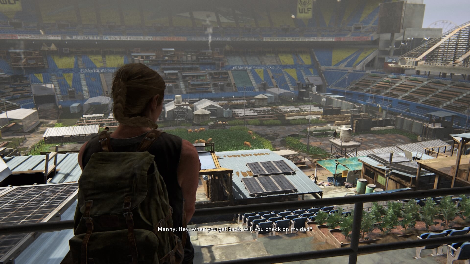 ВОФ развернули штаб на Стадионе Сиэтла: в служебных помещениях организовали жилые комнаты, спортзал, буфет и так далее; само игровое поле теперь используется для выращивания еды, а трибуны превратились в своеобразный рынок. Эбби собирается на патрулирование территории с беременным врачом Мэл, настаивающей на работе в поле, и своим другом Мэнни. По дороге она забирает их собаку по кличке Элис, вся команда забирается в грузовик. Вскоре они попадают в засаду Серафитов и теряют транспорт.