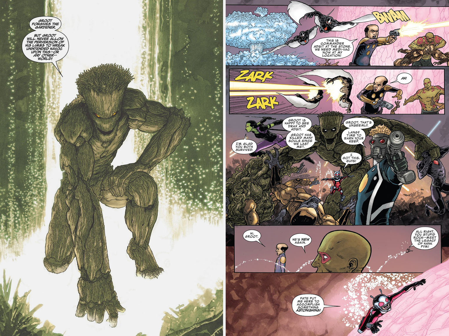 Грут тоже был там, но его образ сильно отличался от реальных комиксов — он, например, мог говорить на языке, понятном каждому. Он утратил эту способность за годы своего возрождения