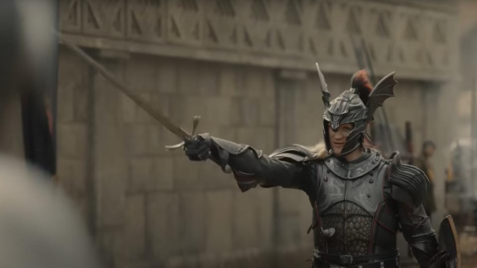 In episode 7, we meet the enormous she-dragon again, snoozing on Driftmark shortly after Laena’s funeral. Viserys and Alicent Hightower’s insolent second son, Aemond, decides to try and claim the dragon as his own mount, and though he’s successful, stealing her away from Laena’s daughters prompts a violent squabble between families. They don’t call it the Dance of the Dragons for nothing! Later, in episode 9, an older Aemond references that he rides the largest dragon in the world—meaning he’s officially bonded with Vhagar. Then, of course, he’s seen riding her in the momentous season 1 finale.