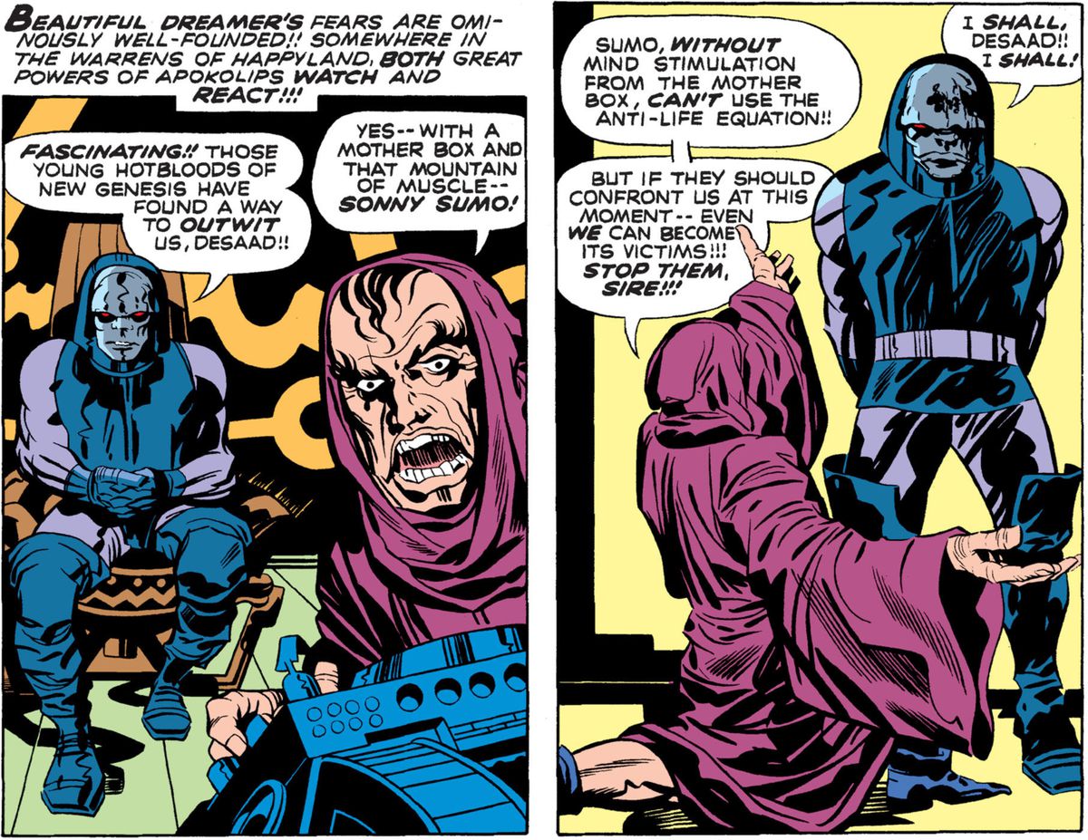 Darkseid and his servant Desaad, circa 1972.Jack Kirby/DC Comics