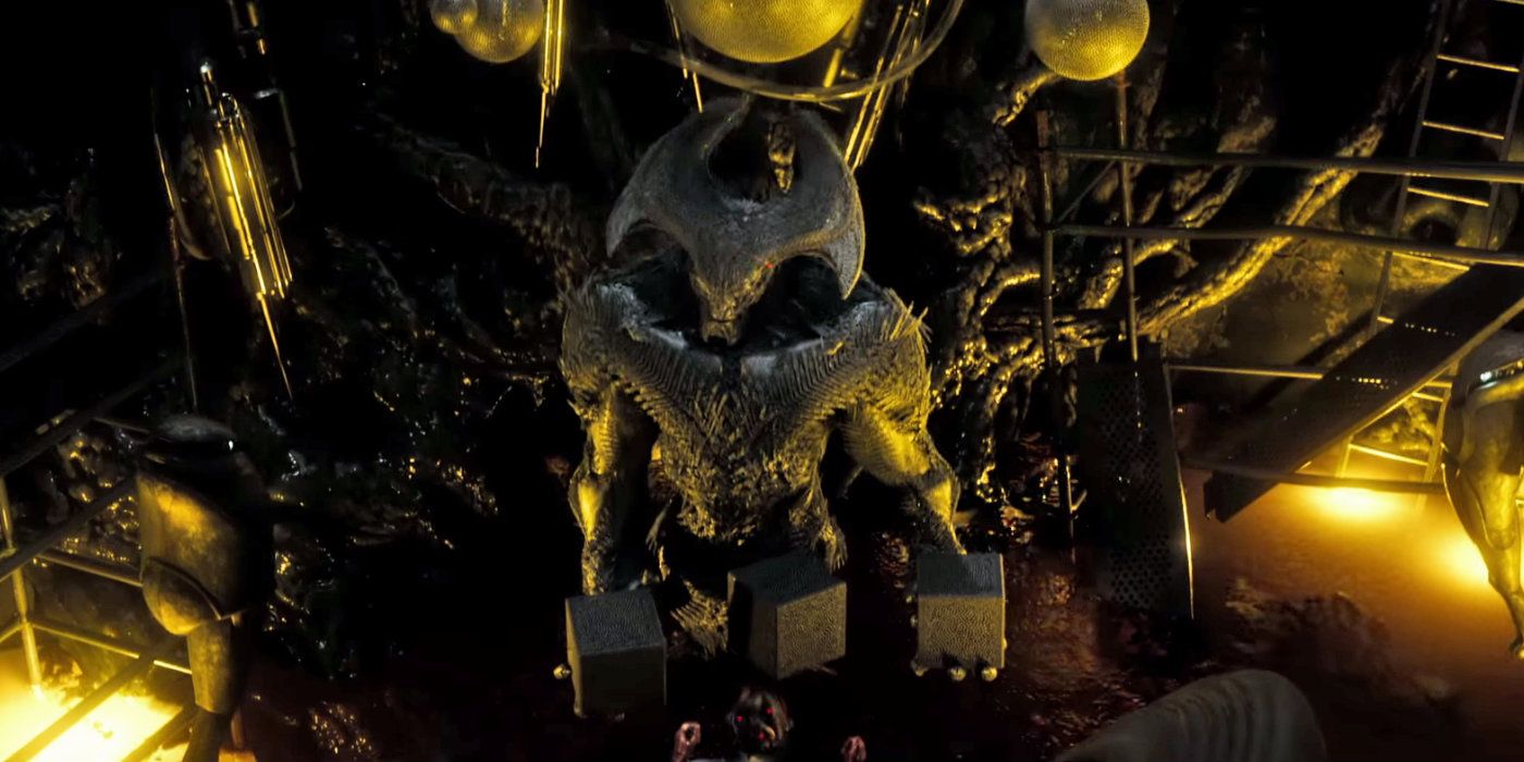 It should be clear that Darkseid puts other “big bads” of the DC Universe to shame, and when the New 52 Reboot of the Justice League used an invasion by Darkseid’s parademon forces to unite the League heroes in defense, it made sense that the movies might do the same. Even so, it was shocking to see Batman V Superman feature a dream sequence of Bruce Wayne’s in which Earth had been turned into a fire-spewing colony of Apokolips, scarred with Darkseid’s Omega symbol, and swarmed by parademons.