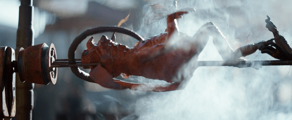 После победы над черепахой-динозавром (именно так мы называем огромного монстра в начале эпизода) Дин Джарин и Оружейник обсуждают уничтожение Мандалора Империей. В этом обсуждении они говорят о тактике Империи по уничтожению планеты посредством остекления — процесса, при котором бластерный огонь СИД-истребителей кристаллизует поверхность планеты. Эта концепция «остекления» исходит из уже неканонической преемственности Legends / Extended Universe.