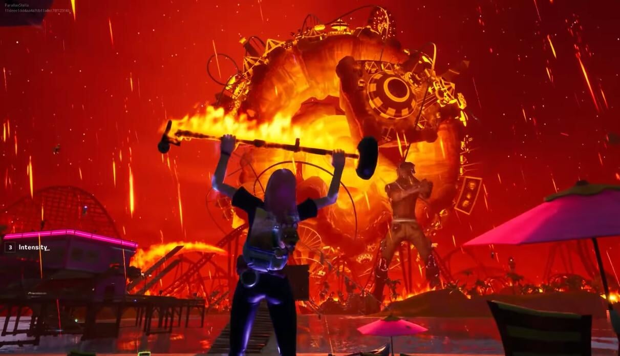 Во время события Fortnite работала по особым правилам. Пользователи попали не в стандартный матч «королевской битвы», а на интерактивное событие с видоизмененной картой. Можно было строить конструкции (чтобы подобраться поближе к эпицентру событий), бегать и прыгать за своего персонажа. Атаковать других игроков при этом было невозможно, но зато можно было размахивать горящей микрофонной стойкой (это фирменный жест Скотта):