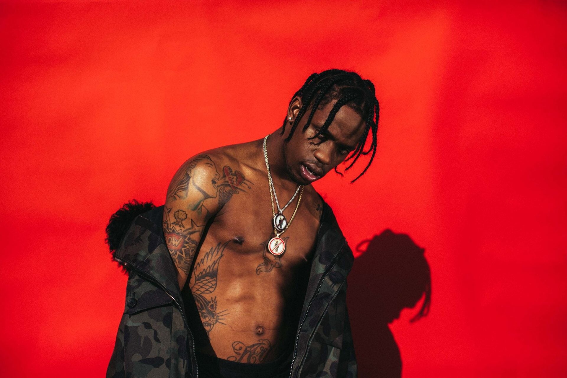 Трэвис Скотт – 27-летний трэп-исполнитель и продюсер из Хьюстона. Уже первый альбом Rodeo, выпущенный в 2015-м, стал платиновым. Трэвис сколлабился с десятком музыкальных мегазвезд, включая Канье Уэста, Джастина Бибера, The Weeknd и Кендрика Ламара. С последним Трэвис особенно близок: Ламар исполнил один из куплетов в треке Goosebumps и пригласил Трэвиса на свой летний тур в 2017-м.