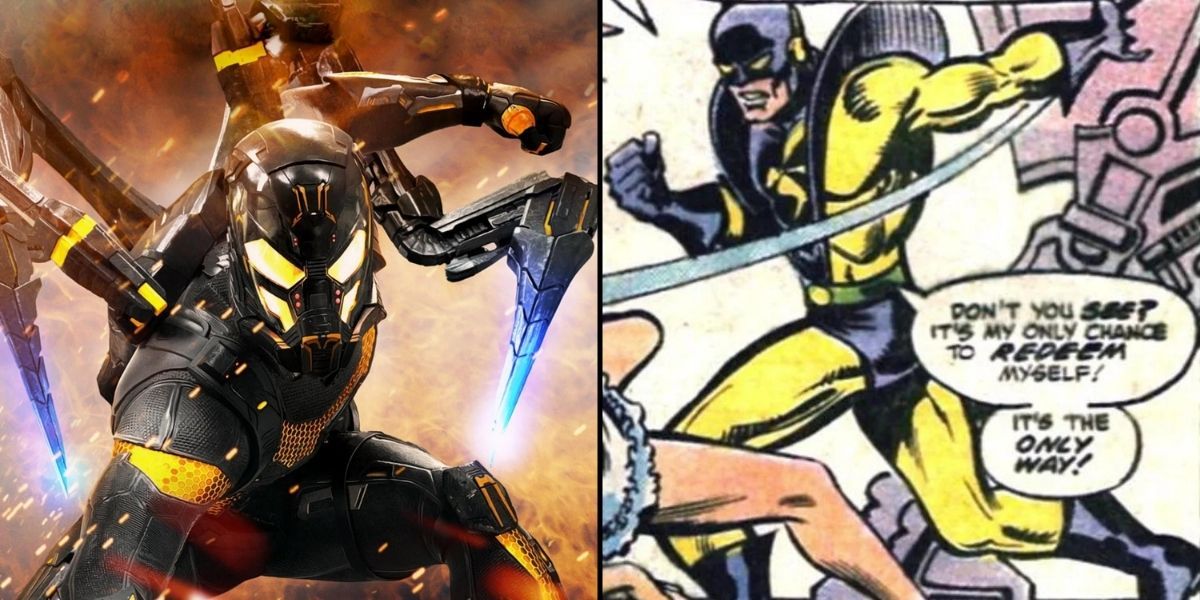 В комиксах Жёлтый жакет — это имя, которое в основном использует Рита ДеМара, женщина-суперзлодей, укравшая свой костюм у Хэнка Пима. За его появление в Человек-муравей тем не менее, MCU решила переоборудовать персонажа Даррена Кросса в роль Желтого жакета, дав ему механизированный костюм, похожий на костюм самого Человека-муравья.