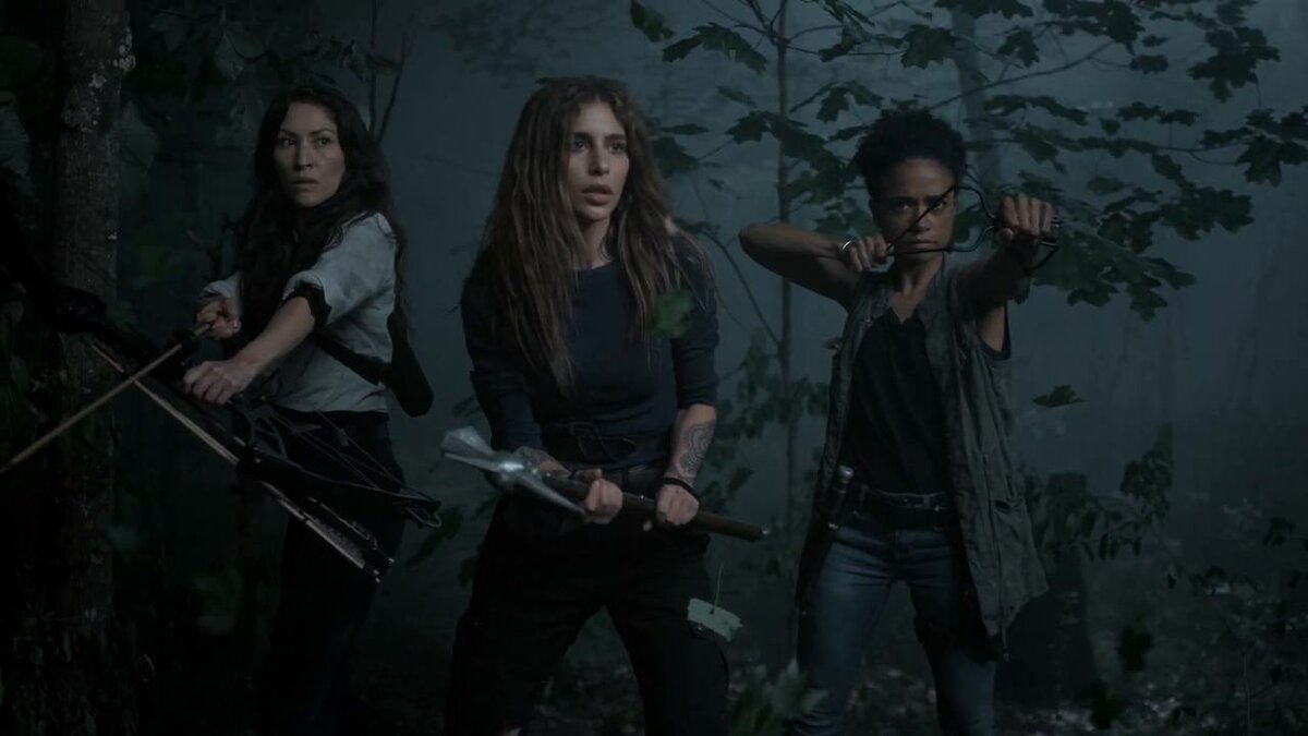 Саманта Мортон, Райан Хёрст и Джеффри Дин Морган на кадре из десятого сезона сериала «Ходячие мертвецы» (2019-2021)