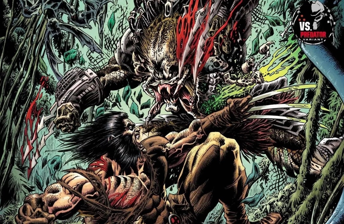 Although the proposed crossover event does not exist yet (only the cover), it depicts Wolverine engaged in a vicious and bloody duel with the Predator in a jungle infested with bats and snakes. A perfect setting for such an epic event.
