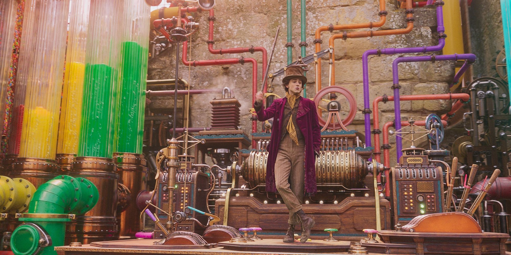 В Вонка главный герой Тимоти Шаламе неграмотен. В частности, это становится проблемой, когда Вонка оказывается привязанным к контракту миссис Скрабит, несмотря на то, что Нудлс велел ему прочитать мелкий шрифт. Это интригующий момент о персонаже, чья голова наполнена мечтами. Прямая причина того, почему он так и не научился читать, не указана, что интересно, учитывая, что мать Вилли Вонки (Салли Хокинс) росла рядом и умела читать и писать. Вонка больше интересовался шоколадом, и его одержимость шоколадом, конфетами и их инновациями позволяет предположить, что он был слишком озабочен ими, чтобы серьезно относиться к чтению.