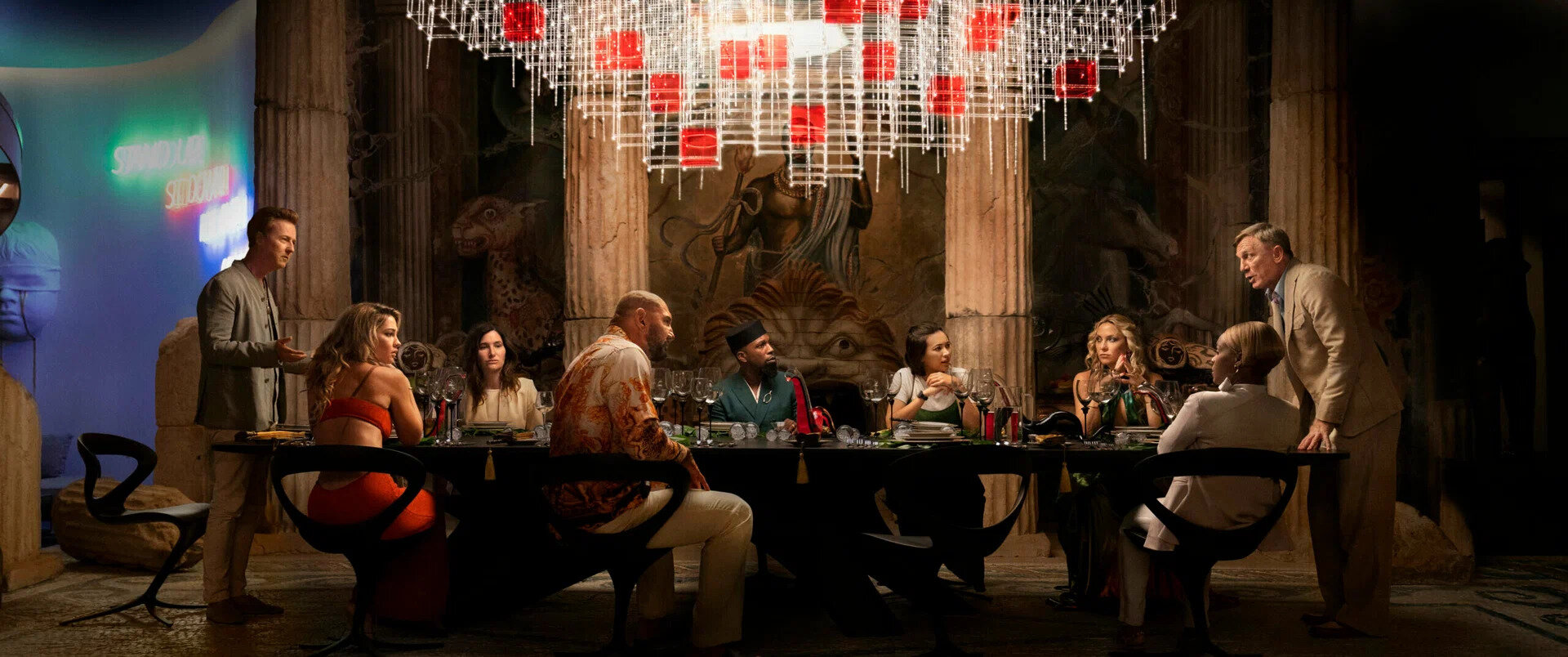 Есть и другие странности. Оказывается, Бенуа Блана на вечеринку не звали. Кто же тогда прислал приглашение? Хотя появление детектива оправдает себя. Вскоре на острове произойдет убийство, и Блан возьмется за расследование. Он ищет улики, следит на подозреваемыми и снимает слой за слоем, пока в луковице не останется секретов.