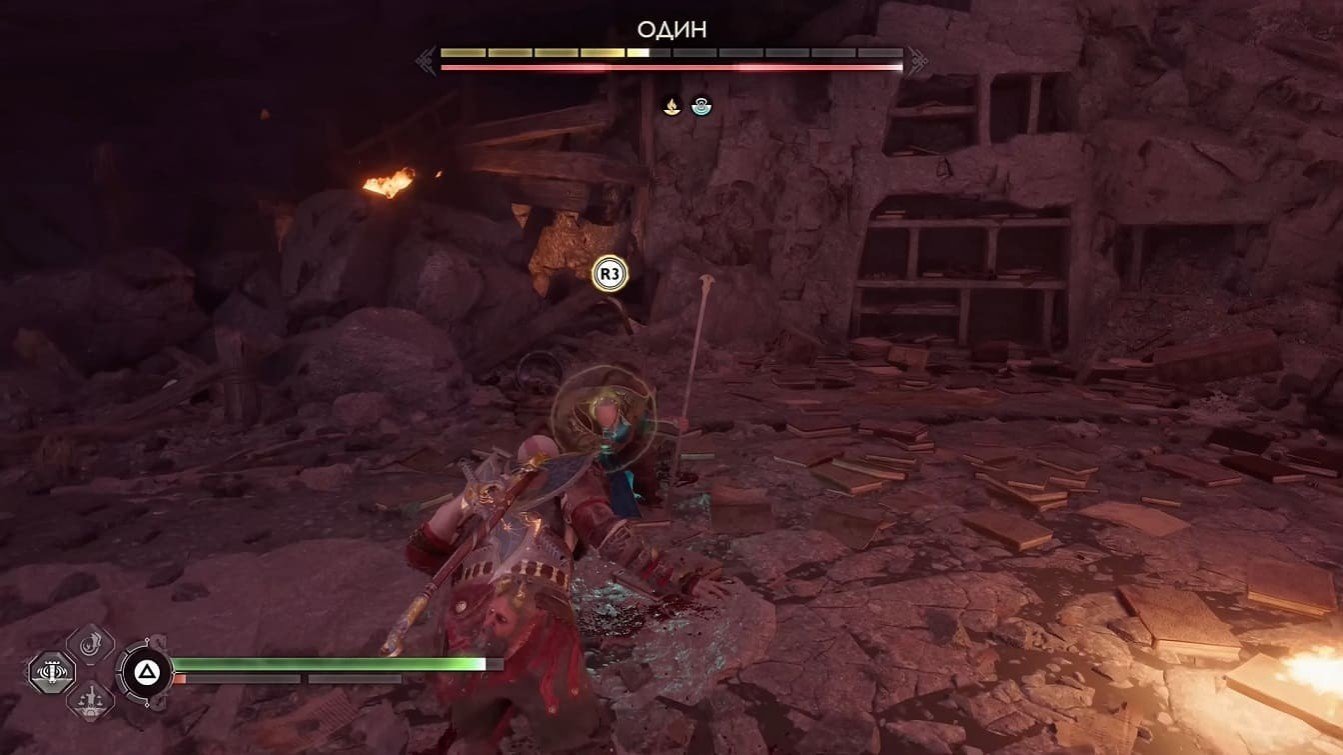 Если вас сбила стая воронов, вы можете избавиться от них, нажав кнопку с кружком. Если вы успешно стряхнете их, когда Один будет рядом с вами, ударная волна, исходящая от Кратоса, поразит его.