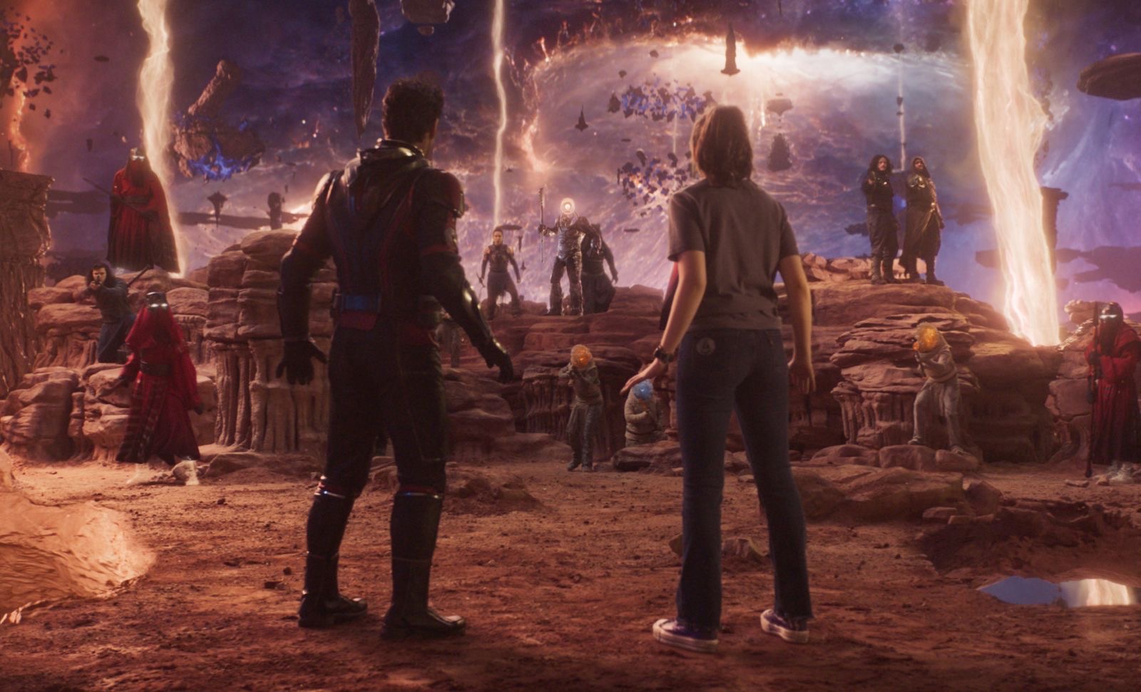 Снова на Земле Скотт вспоминает о своих приключениях. Он ненадолго опасается предупреждений Канга о том, что его смерть вызовет прибытие других, подобных ему, чтобы терроризировать мультивселенную, но быстро отбрасывает их как ненужные размышления. Затем Скотт празднует день рождения Кэсси с Хоуп, Хэнком и Джанет. В фильме есть две сцены после титров, которые мы также подробно разобрали .