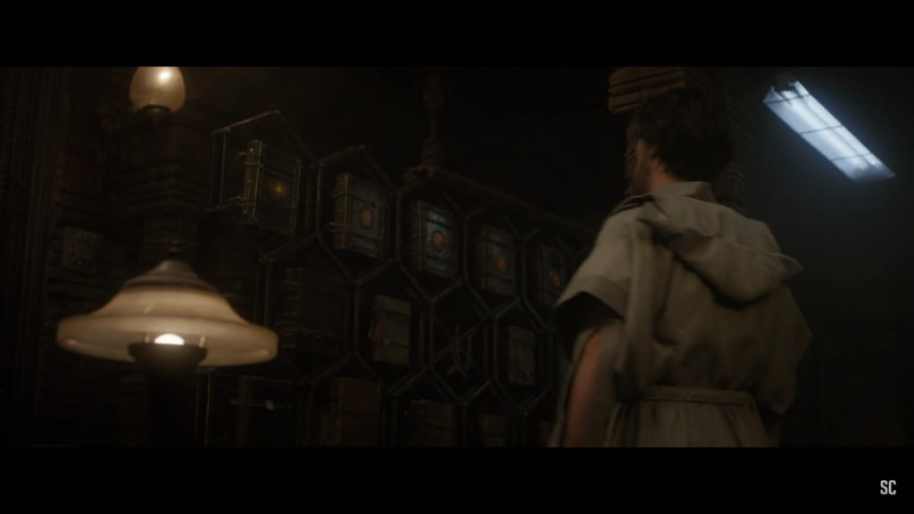 Здесь у фанатов сразу несколько теорий. Начнём с той, о которой подумала я во время просмотра. Я вспомнила магические книги в библиотеке из коллекции Доктора Стрэнджа. И именно там нам показывали, что одна книга отсутствует. А ещё все книги внутри шестиугольников!