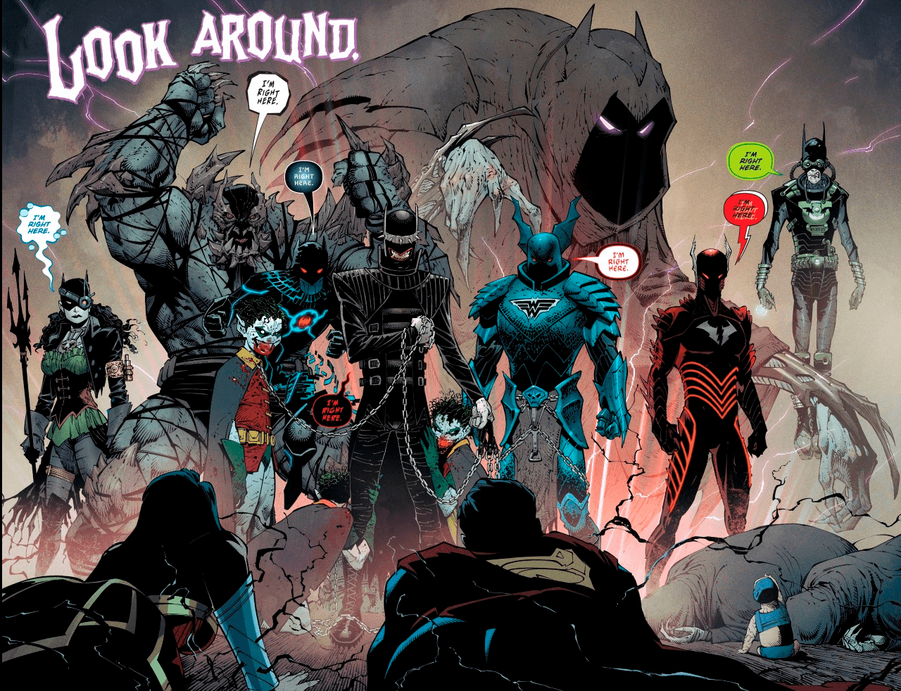 Например, Рассвет в детстве унаследовал кольцо Зеленого Фонаря и использовал его, чтобы убить Джо Чилла, превратив его в сверхчеловеческого Бэтмена без обычной дисциплины Брюса Уэйна. Опустошитель — это Бэтмен, который превращается в Судного дня, чтобы убить вышедшего из-под контроля Супермена. А Машина-убийца — это кибернетический Бэтмен, чей разум поглотил искусственный интеллект, изобретенный Киборгом.