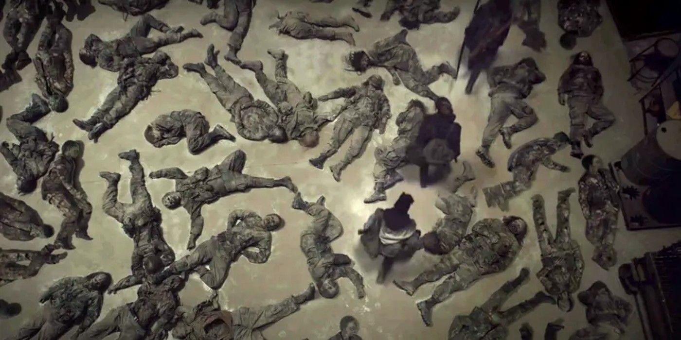Действительно, это скрывающийся человек, который забирает ногу Гершела в комиксах, выползая из своего невидимого укрытия, чтобы укусить ничего не подозревающего фермера за лодыжку. В телеадаптации Ходячих мертвецов зомби-скрытницы проявляются немного по-другому. Наиболее очевидным примером являются «спящие» зомби из Ходячих мертвецов Ходячие мертвецы Премьера 11 сезона. Команда главных героев спускается в комнату, полную зомби, которые не двигаются и не пытаются их съесть. Группа собирает припасы и почти убегает, не разбудив мертвецов под ногами, но капли крови оказывается достаточно, чтобы подтолкнуть скрытников к действию.