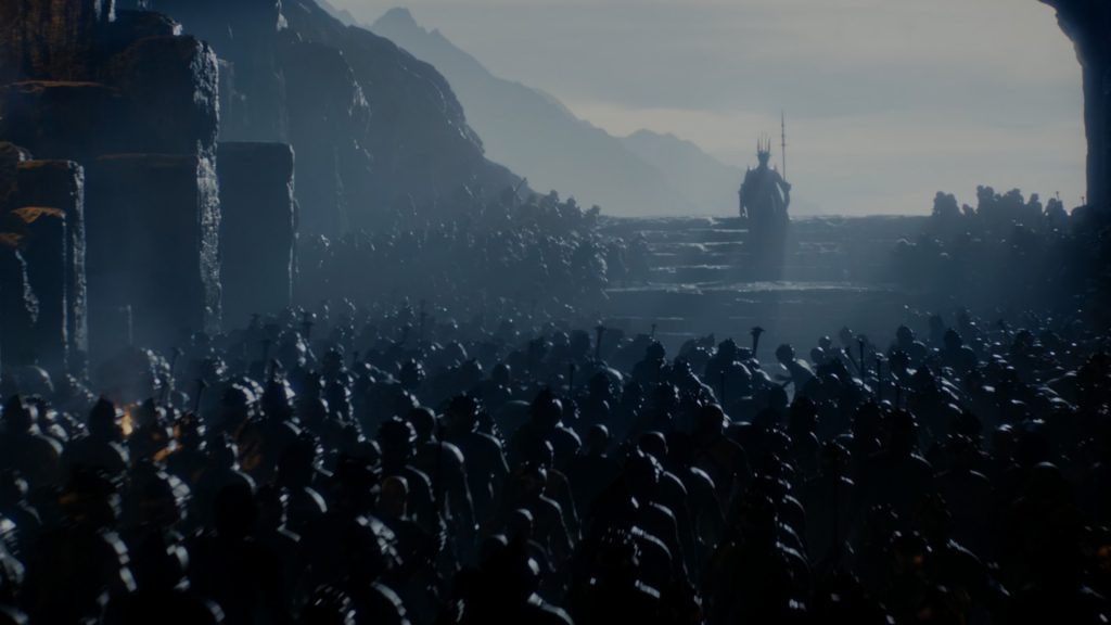 При этом местами отсебятина вполне себе работает, дополняет каноны «Властелина колец» и не противоречит им. Например, битва с орком, пробравшимся в жилище людей позволяет взглянуть на этих тварей с новой стороны. У Джексона герои кромсали орков легко и непринуждённо, а тут мы видим огромного, сильного монстра, который внушает ужас — такими орков и видят обычные жители Средиземья.