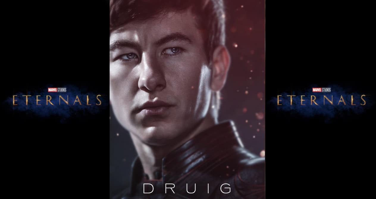 Заканчивать, Барри Кеоган Это Друиг, еще один из Вечных, которого мы увидим в кино с 5 ноября. Сила этого заключается в том, чтобы иметь возможность манипулировать мыслями людей.