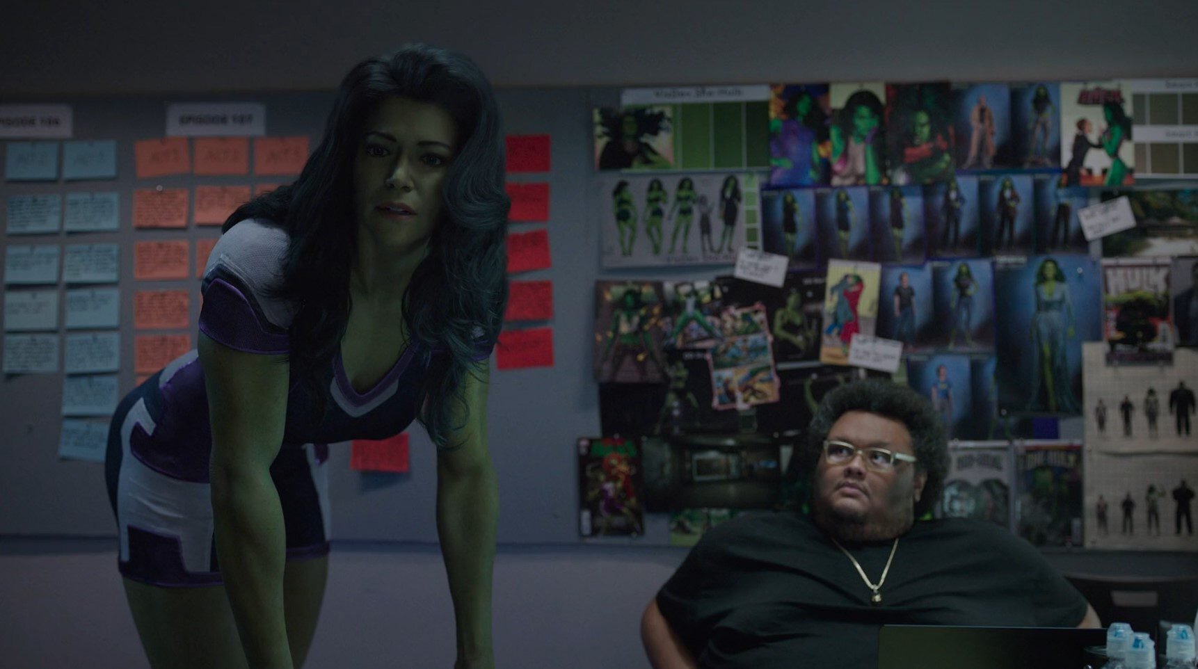 Женщина-Халк из комиксов знает, что ее придумали и нарисовали. Она часто спорит со сценаристом, обзывает художника и даже рвет страницы, которые ей не по душе. В сериале героиня ведет себя так же.
