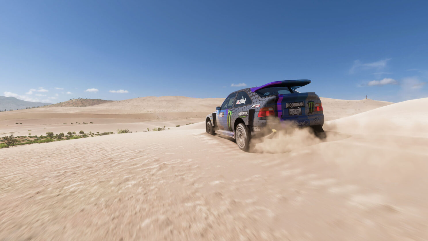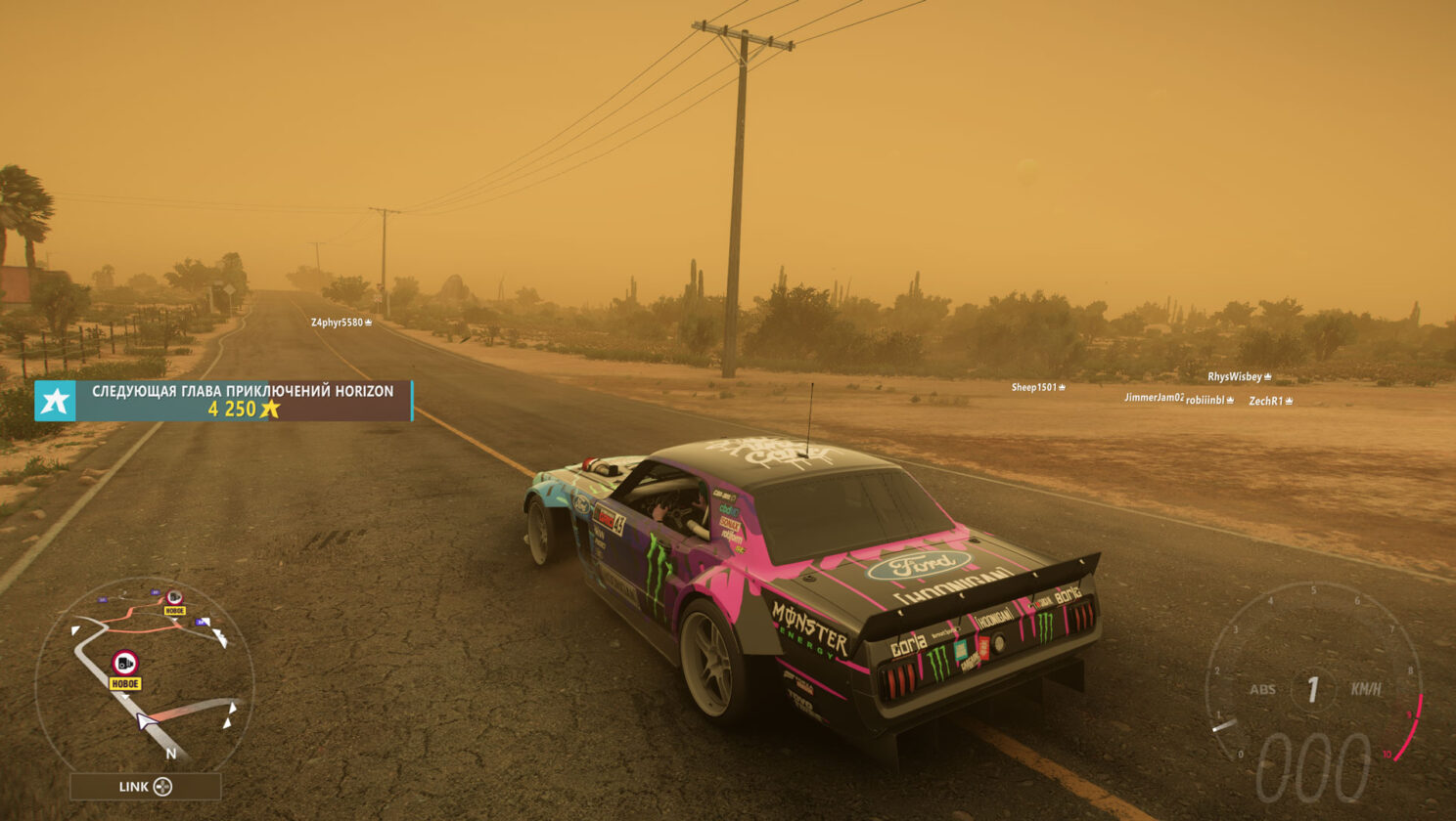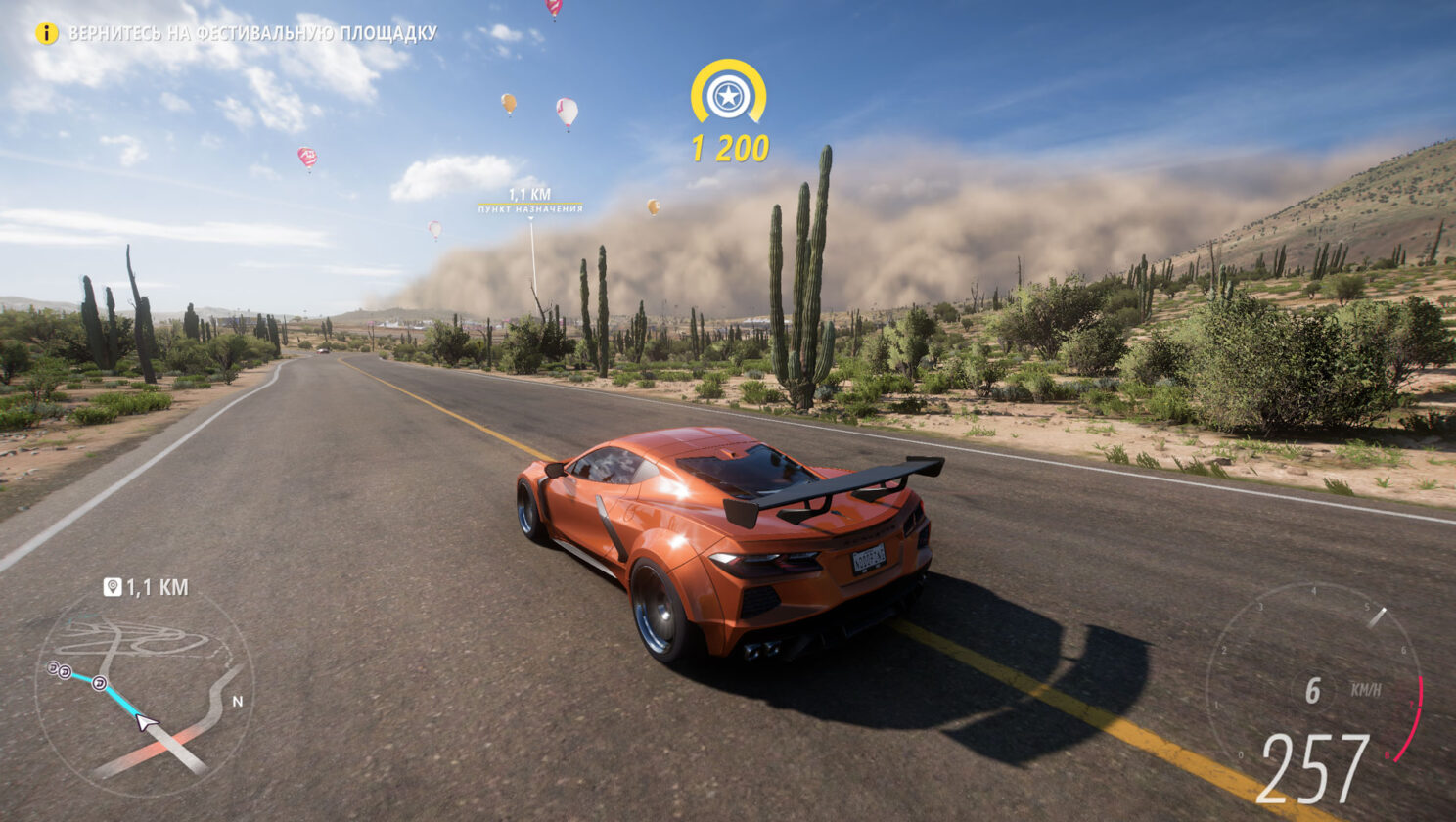 Если в Forza Horizon 4 добавили сменяемость сезонов, то пятая часть хвастается погодными катаклизмами вроде песчаной бури или тропического шторма. Когда приближаешься к ним, то они действительно впечатляют и выглядят очень опасно. Но на деле, внутри этих бурь всё достаточно спокойно. Ну да, ветерок дует чуть сильнее, а дождик погуще, но видимость становится низкой, только если вы играете с видом из кабины. Выглядит эффектно, но бояться, что вашу машину унесёт, не стоит.
