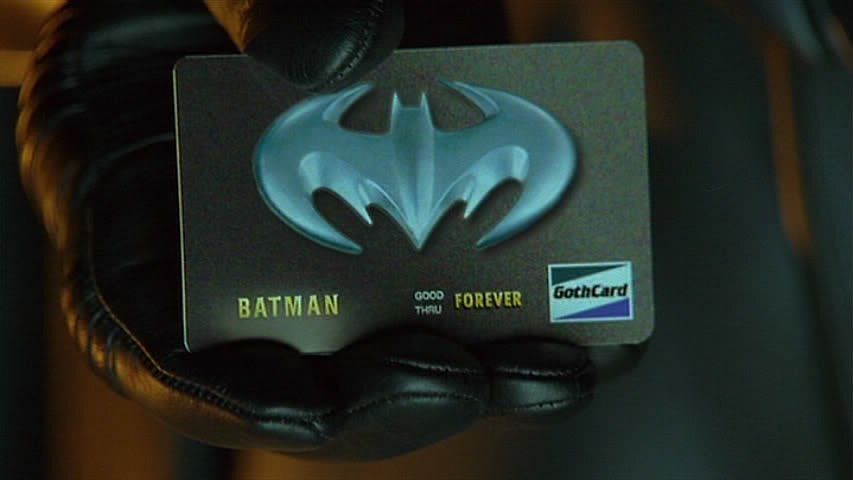 Запомнилась и безлимитная кредитка: в сцене аукциона Бэтмен с Робином торгуются, счет идет на миллионы – Бэтмен предлагает $7 млн и достает безлимитную кредитку. Причем деньги у него всегда при себе и в неограниченном количестве. В других фильмах франшизы никто не смог так забавно обыграть финансовые возможности мстителя в костюме летучей мыши.