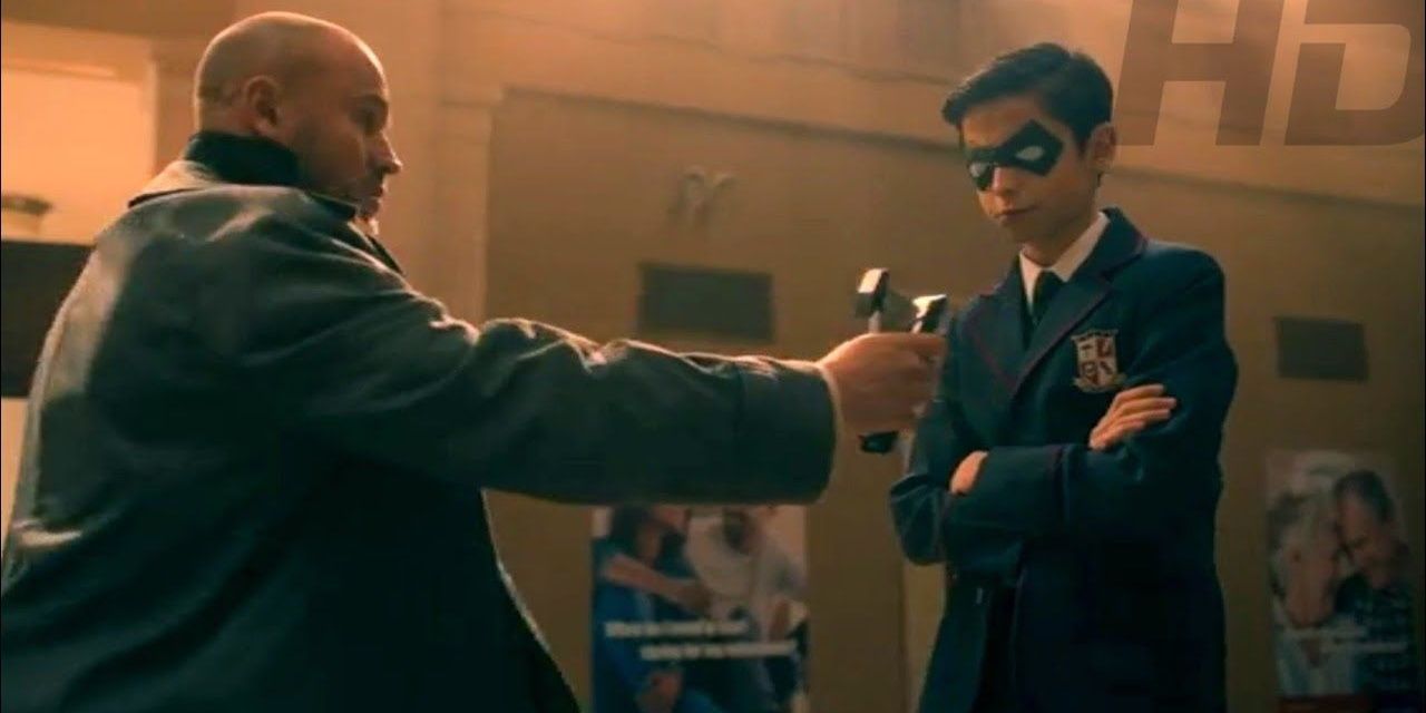 Ключом к успеху Дэмиена Уэйна в живом исполнении является выражение его невероятной самоуверенности, а иногда и враждебного стремления быть лучше всех остальных. Эйдан Галлахер продемонстрировал такую же непогрешимую уверенность и враждебное, но в конечном итоге любящее чувство раздражения и соперничества со своей семьей в роли Номер Пятого в Академии Амбрелла. Галлахер, которому сейчас 20 лет, немного старше Дамиана (обычно он находится в подростковом возрасте), но он достаточно близок к этому, чтобы просто состарить Дэмиена на несколько лет и заставить Галлахера играть на год или два моложе, чем он есть на самом деле, не следует проблема.