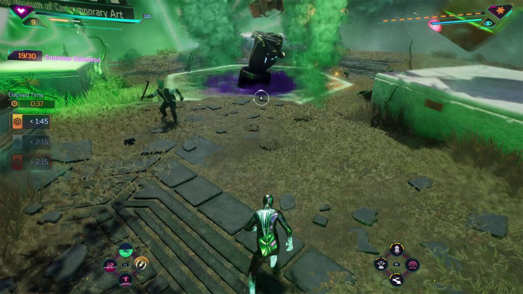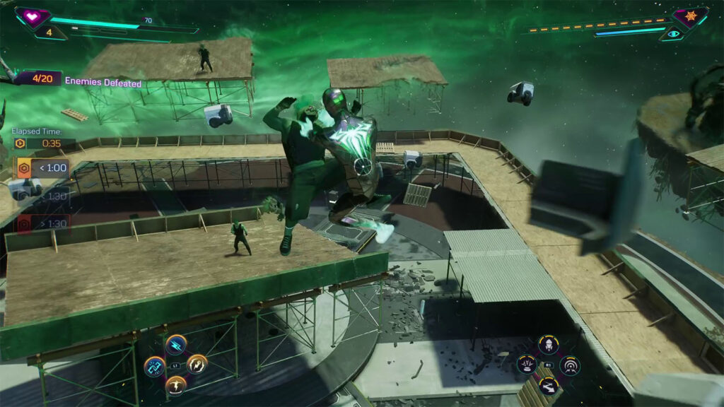 The enemies in this challenge can pop in and out of their positions, so getting to them as quick as possible and locking them into a stagger will help. Also, a fast way to take advantage of Mysterio’s fist is to round up the enemies in the area, then jumping away from the spot just as soon as the fist pops out. All of the enemies hit by the fist will still count towards the objective.