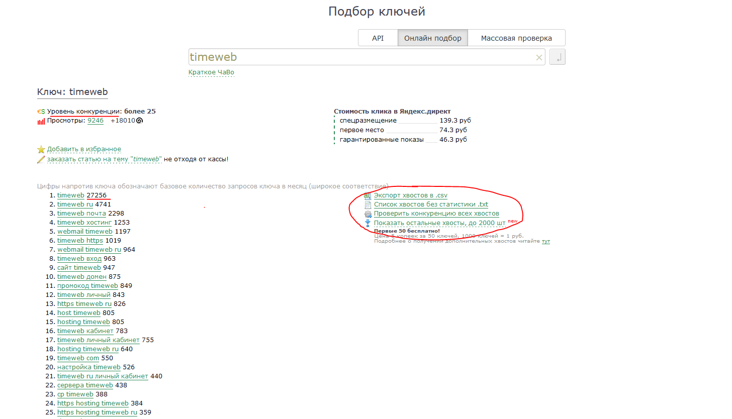 Также весь список ключей можно скопировать или экспортировать. Вот такой полезный сервис!