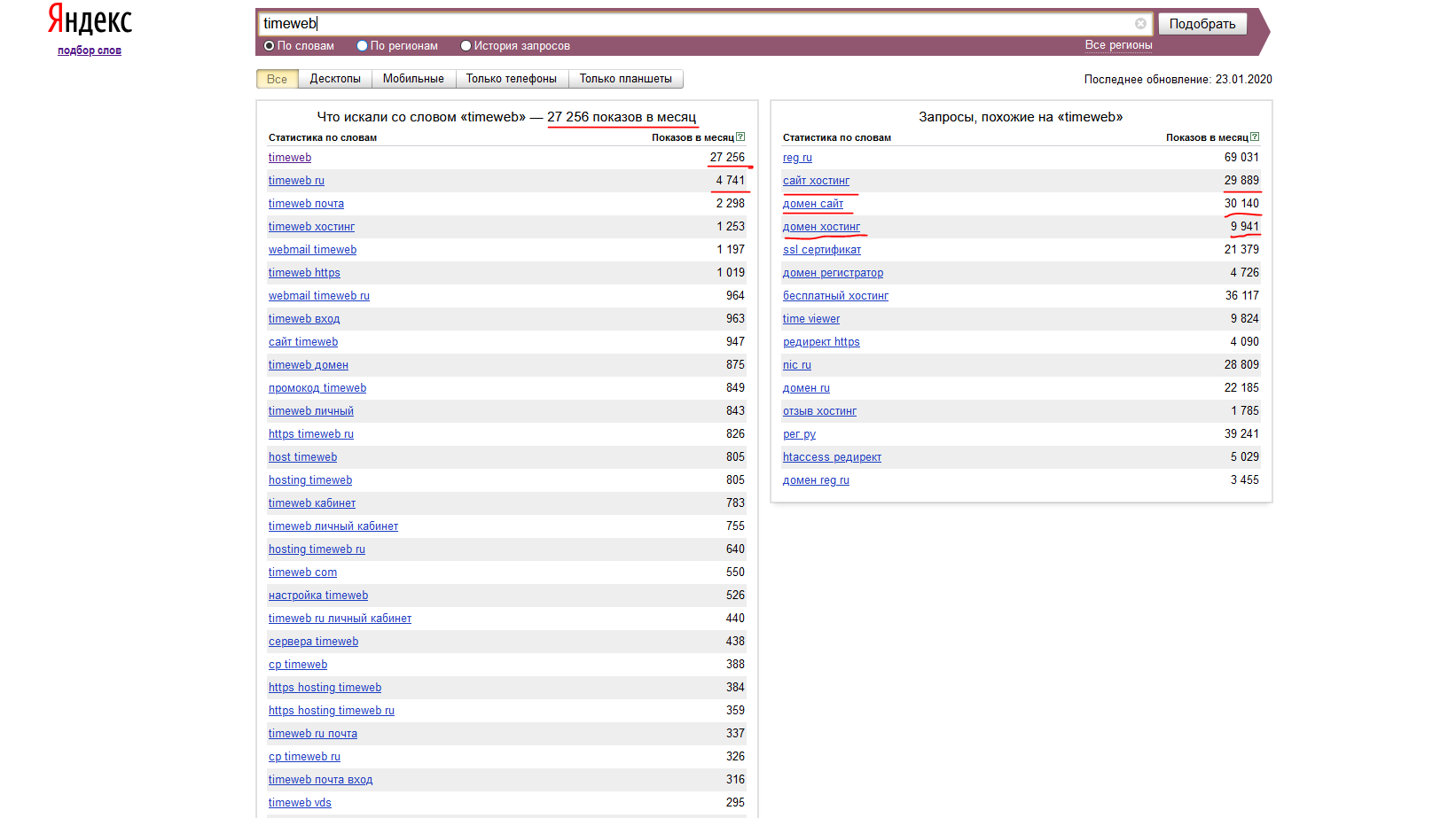 Сервис позволяет посмотреть статистику по ключевым словам. Мы можем узнать, какие запросы люди вводили в Яндексе за последний месяц. Также Яндекс.Вордстат показывает: