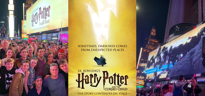 Таймс-сквер в Нью-Йорке был захвачен черной меткой, появившейся на всех экранах. В середине сентября 2019 на площади прошло мероприятие «Добро пожаловать в Хогвартс». Зрелище было рекламой будущего спектакля, и шоу было поистине масштабным. А теперь главная новость – 5 ноября 2019 в продажу поступит новая книга «Гарри Поттер и Проклятое Дитя: путешествие — за кулисами отмеченного наградами сценического спектакля».
